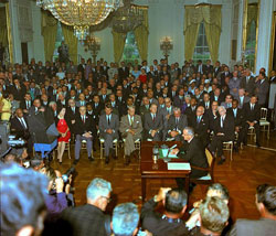 LBJ Civil Rights Act crowd.jpg  © wikimedia commons, Datum: 2.07.1964, Quelle: http://lbjlibrary.org/collections/photo-archive/photolab-detail.html?id=1107 (Lyndon Baynes Johnson Library & Museum photo archive, serial number C522-2-WH64)  Urheber: O: J. Rapp, gemeinfrei