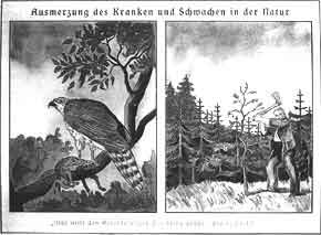 dienen die erbgesunden deutschen Männer in den Wehrmannschaften dem deutschen Volke. M 6 Ausmerzung des Kranken und Schwachen in der Natur (Propagandamaterial für die Schule)