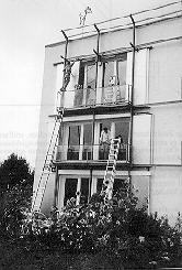 Im Passivhaus Darmstadt-Kranichstein wurde dennoch erstmals demonstriert, daß auch das Nullheizenergiehaus mit noch vertretbarem Mehraufwand allein durch weitere passive Maßnahmen bereits heute erreichbar ist. 1994 wurden in einer der vier Wohneinheiten des Hauses zusätzlich Dämmschiebeläden eingebaut, die im Winter nachts geschlossen werden und den Fenster-k-Wert dann auf unter 0,3 W/(m2K) reduzieren (vgl. Abb. 6).