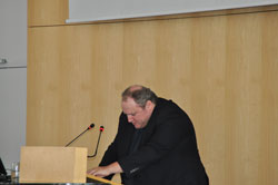 Der künftige Biograph Hans Filbingers umriss die Biographie des ehemaligen Ministerpräsidenten und betonte dabei auch die modernen, reformerischen Elemente im politischen Leben Filbingers. Er machte auch darauf aufmerksam, dass man aufpassen müsse, dass die Diskussion über Filbingers Vergangenheit als Marinerichter im Nationalsozialismus die Lebensleistung des Politikers nicht verdecke.