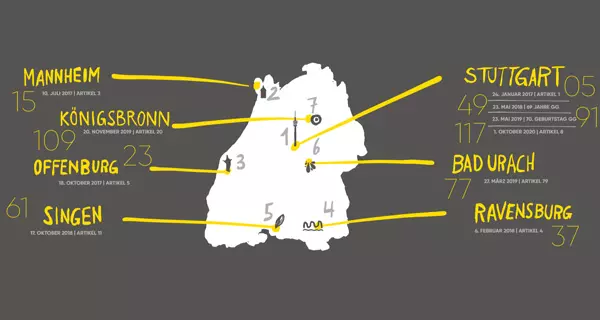 Die Mitwirkenden kommen aus fast allen Gesellschaftsbereichen: Politikerinnen und Politiker, Vertreterinnen und Vertreter von Kirchen und Religionsgemeinschaften, Wissenschaftlerinnen und Wissenschaftler, Künstlerinnen und Künstler, Journalistinnen und Journalisten oder Sportlerinnen und Sportler. Dabei sollen vor allem junge Menschen einbezogen werden. Auftakt war am 24. Januar 2017 im Landtag von Baden-Württemberg mit Artikel 1 des Grundgesetzes: „Die Würde des Menschen ist unantastbar.“ (Quelle: Landtag Baden-Württemberg)